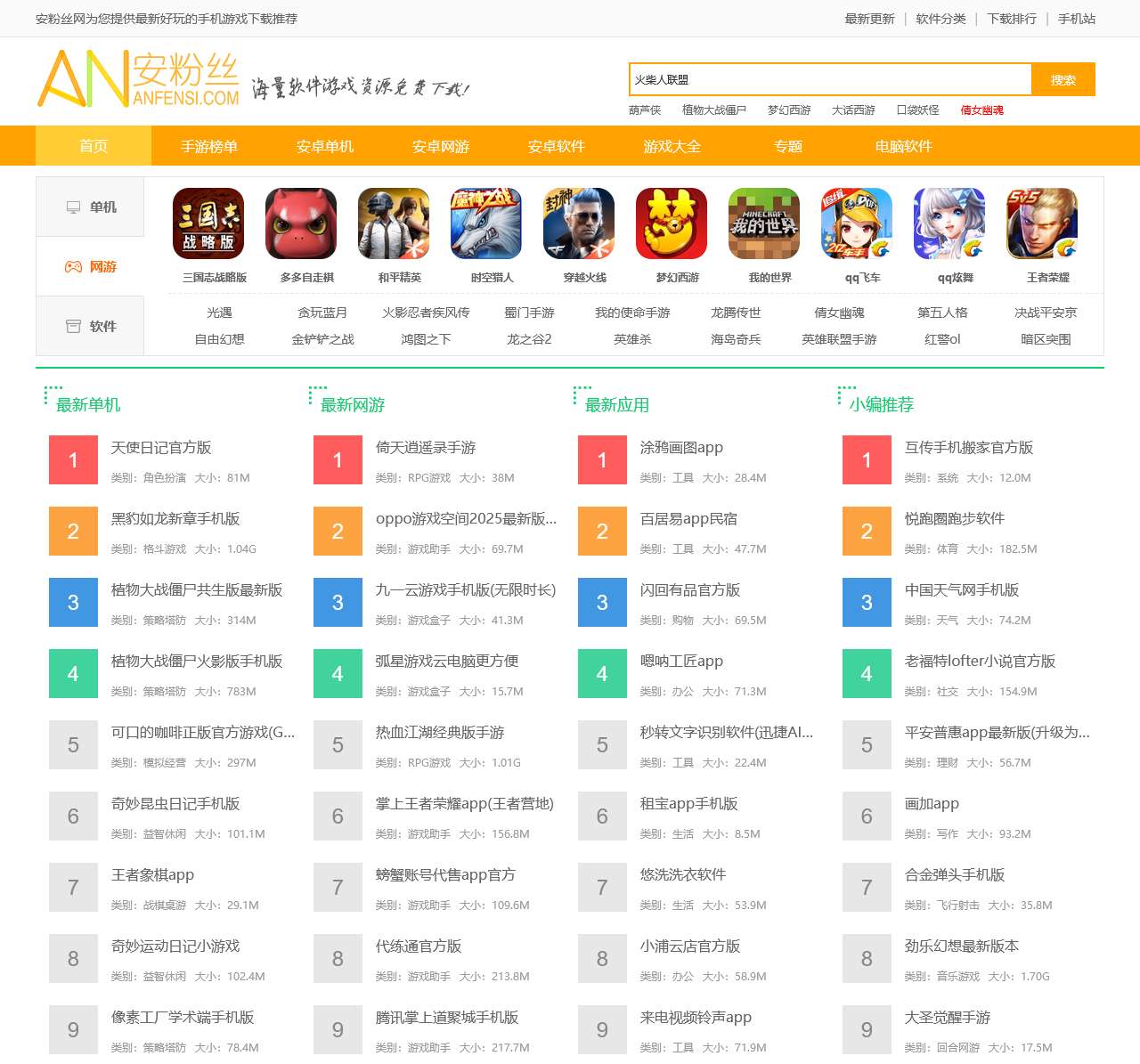 安粉丝网为用户发现更多最新最热门的手机游戏和软件,本站拥有海量的安卓手游资源和正版应用app下载,全部免费提供,绝对安全可靠,更有每日最新和热门排行榜等你来关注,了解全网热门!