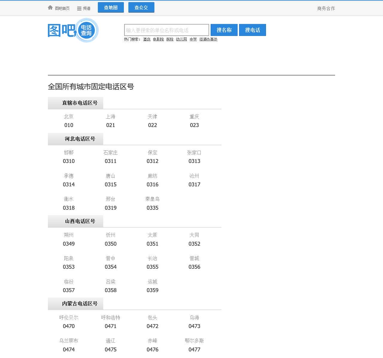 图吧电话查询提供全国所有城市固定电话区号查询,拥有高质量的区号大全,能够进行电话区号归属地查询