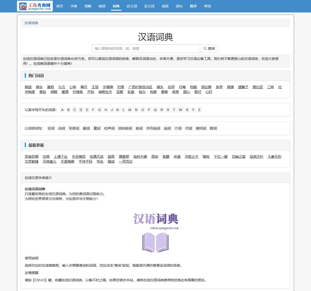 选择对应的在线搜索框,输入你想要查询的词语,然后点击“查询”按钮,就能很方便的查看该词语的信息。
