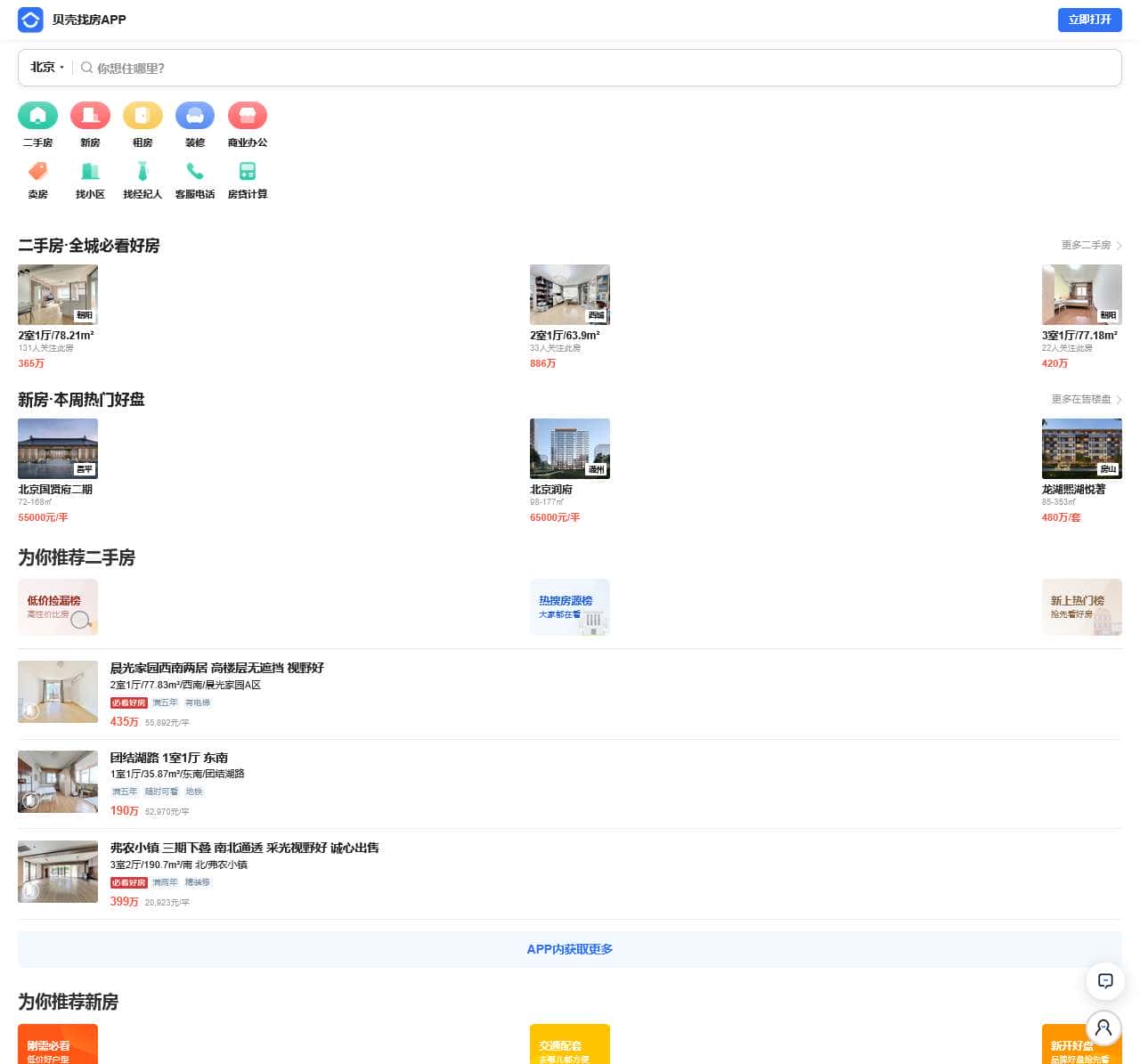 北京贝壳提供真实房源的房产信息平台,为北京买房、北京二手房、北京新房购买以及北京租房需求的用户提供便捷服务.同时有智能找房、VR看房等先进科技找房功能等你来体验,想在北京买房、购买北京二手房、新房、租房,想了解到一手房产资讯、房价行情,就来北京贝壳找房吧!