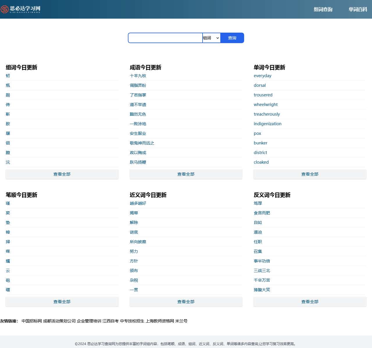 思必达学习查询网为您提供丰富的字词组内容,包括笔顺、成语、组词、近义词、反义词、单词等诸多内容查询,让您学习复习效率更高。