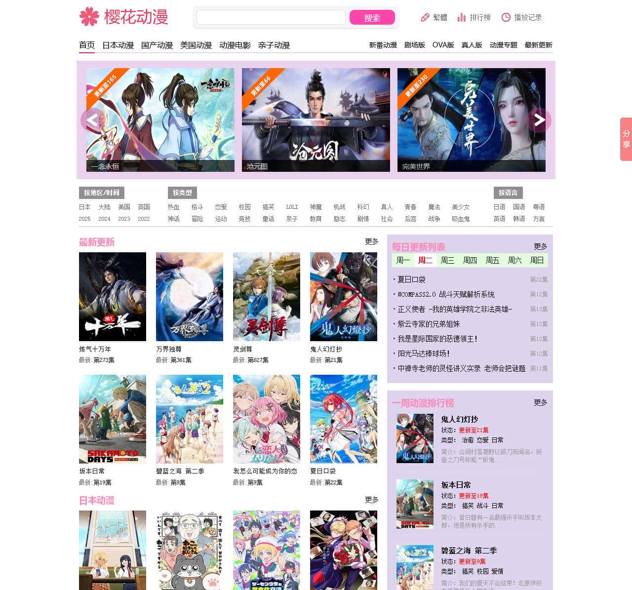 樱花动漫拥有上万集高清晰画质的在线动漫,观看完全免费、无须注册、高速播放、更新及时的专业在线樱花动漫站,我们致力为所有动漫迷们提供最好看的动漫。