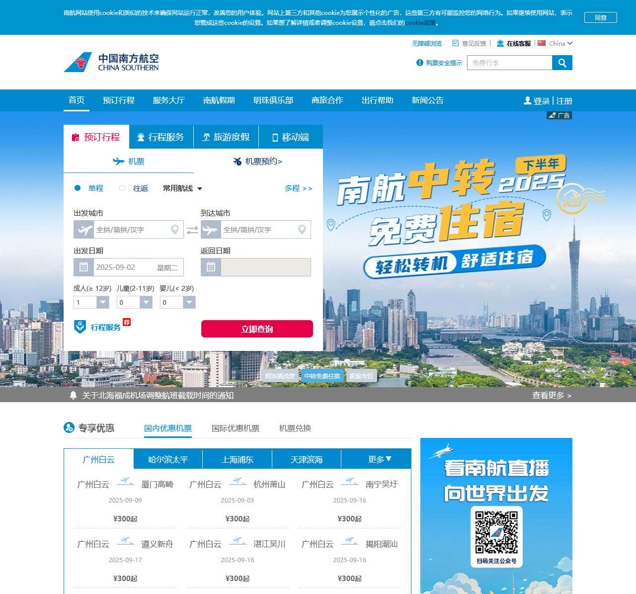 中国南方航空为您提供国内国际飞机票查询及票价信息,包括飞机票预订、机票改签、每月28日南航明珠会员服务和低价国内国际机票、往返机票、打折机票及航班信息.是国内专业的订机票及机票查询网站,南航全国客服热线95539.