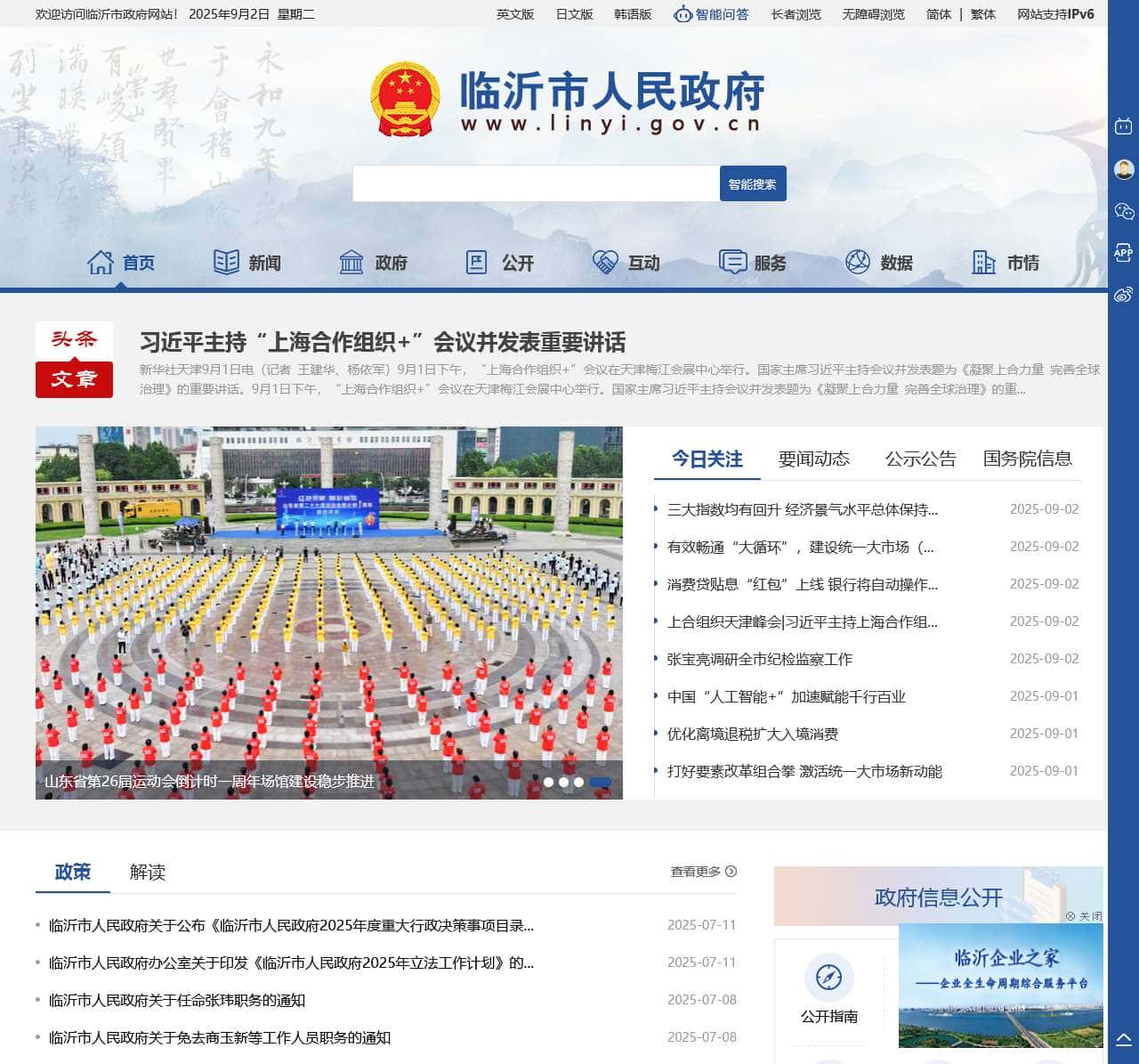 本站盾灵导航提供的欢迎您来到临沂市人民政府数据都来源于网络,不保证外部链接的准确性和完整性,同时,对于该外部链接的指向,不由盾灵导航实际控制,在2025年9月19日 下午8:32收录时,该网页上的内容,都属于合法合规,后期网页的内容如出现违规,请联系本站网站管理员进行举报,我们将进行删除,盾灵导航不承担任何责任。