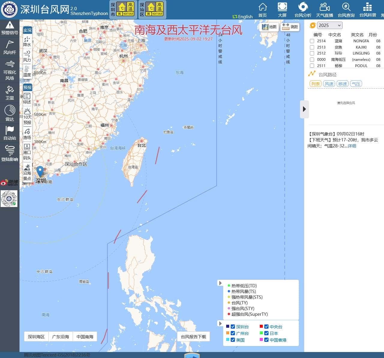 深圳台风网是由深圳市气象局主办的台风信息发布站点,实时追踪南海及西太平洋热带气旋活动,并提供热带气旋中长期预报信息、卫星云图、降雨等内容