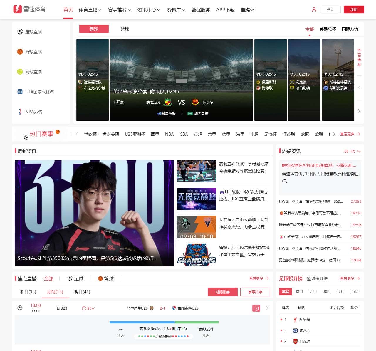 雷速体育是专业的体育赛事直播平台,提供最快的足球直播、篮球直播、网球直播、电竞直播等即时直播,雷速体育努力做最好即时体育直播平台。