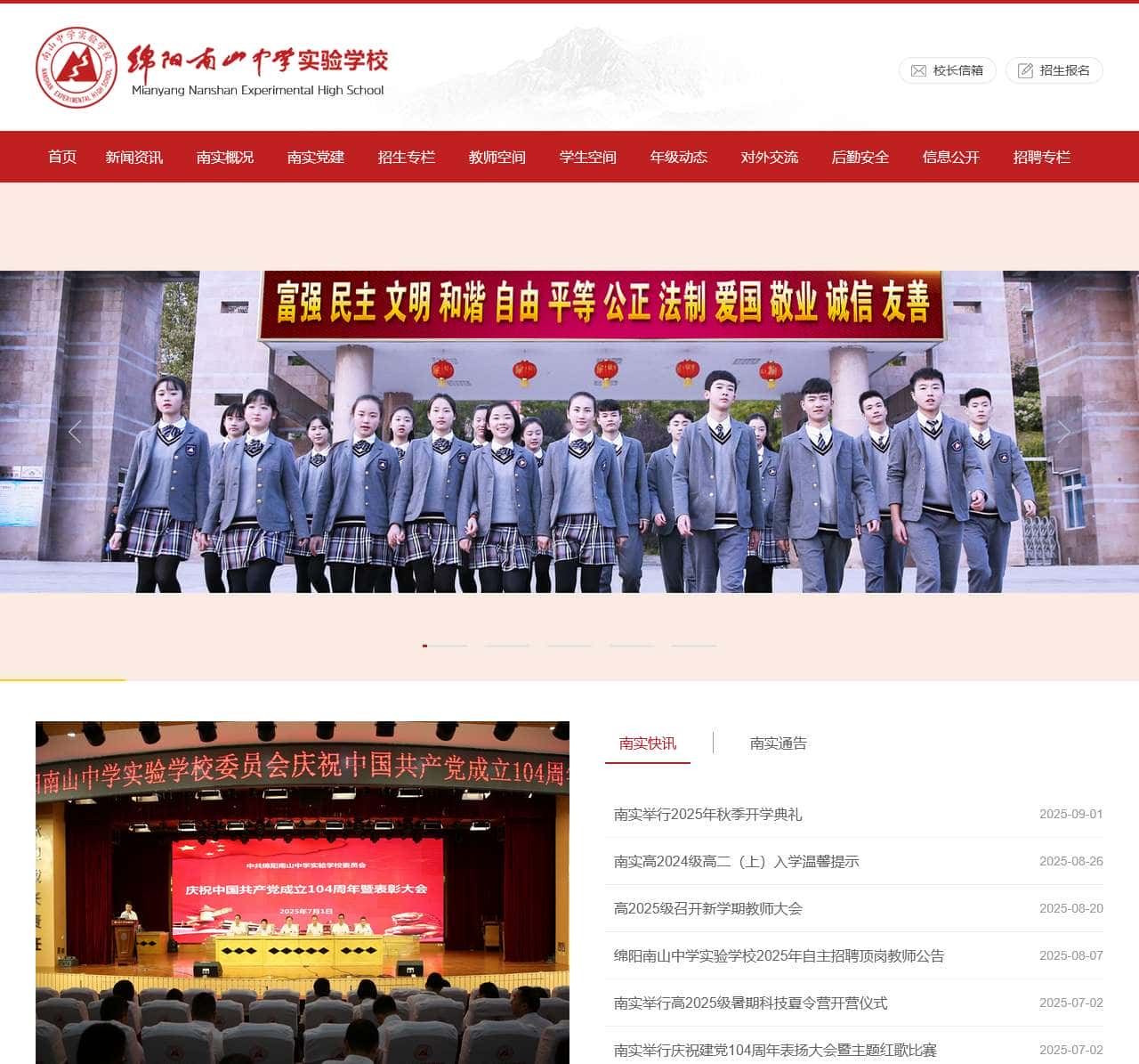 绵阳南山中学实验学校坐落于绵阳市教育园区,占地近300亩,是绵阳市委市政府站在进一步促进绵阳基础教育优质化、多样化、特色化发展的战略高度,由市属国有企业绵阳市人才集团(原教投集团)于2009年投资兴建的一所市直属、高规格、寄宿制、新机制优质高中学校。