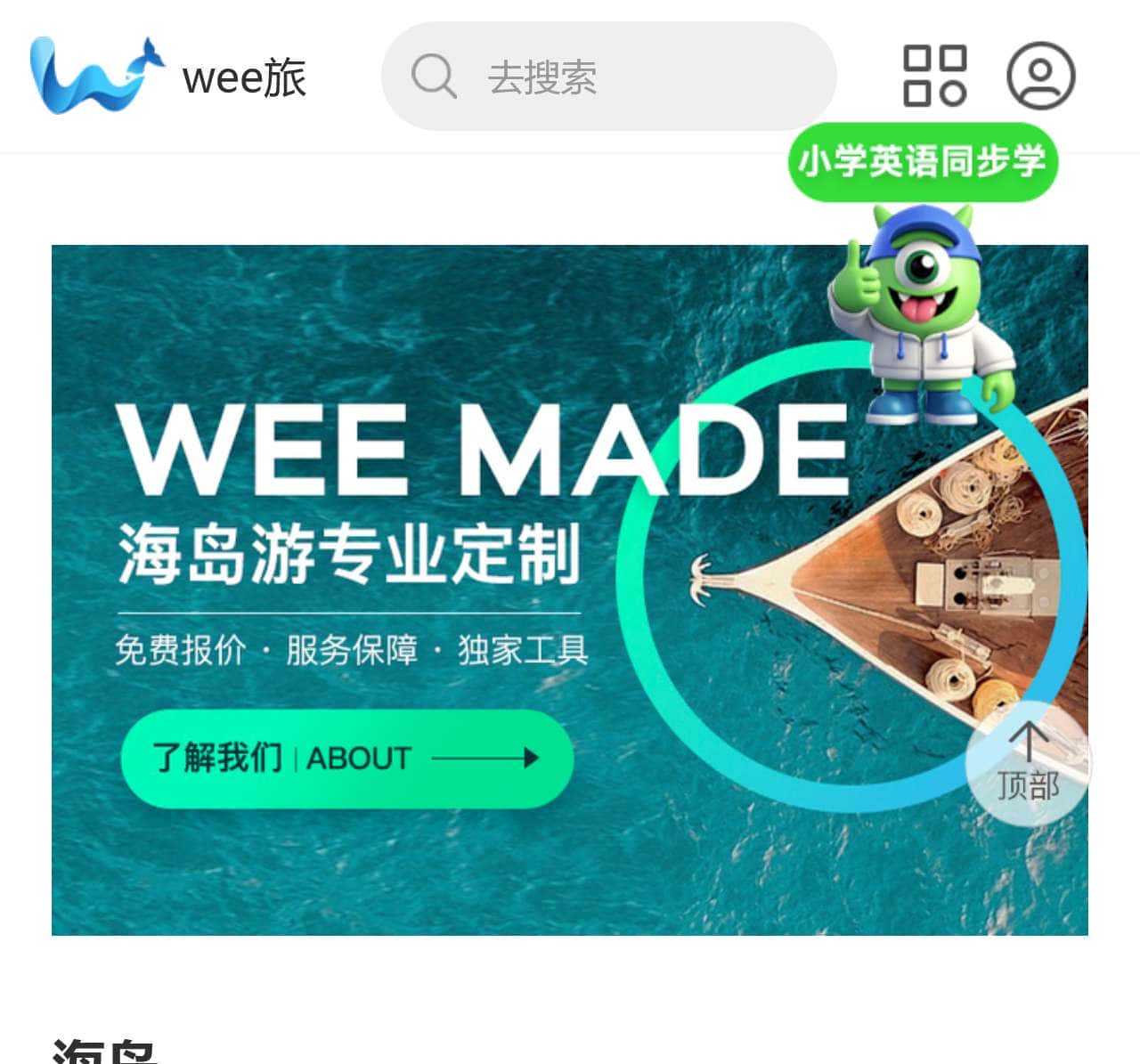 实用的海岛出行工具,丰富的海岛旅游攻略玩法,贴心的定制旅行服务,便捷的当地旅游玩法,不止是马代、塞班、巴厘、三亚,一站式解决海岛出行问题,去海岛,用wee旅.