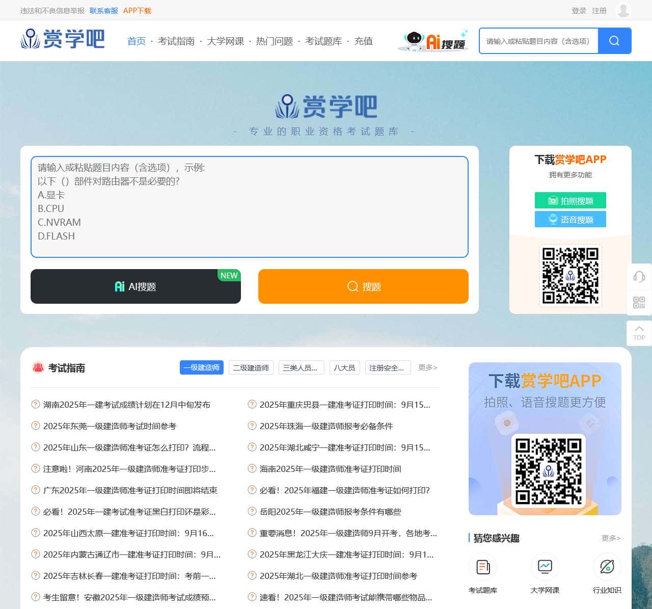 赏学吧是专业的考试答案库,可以高效的解决您的做题没答案难题